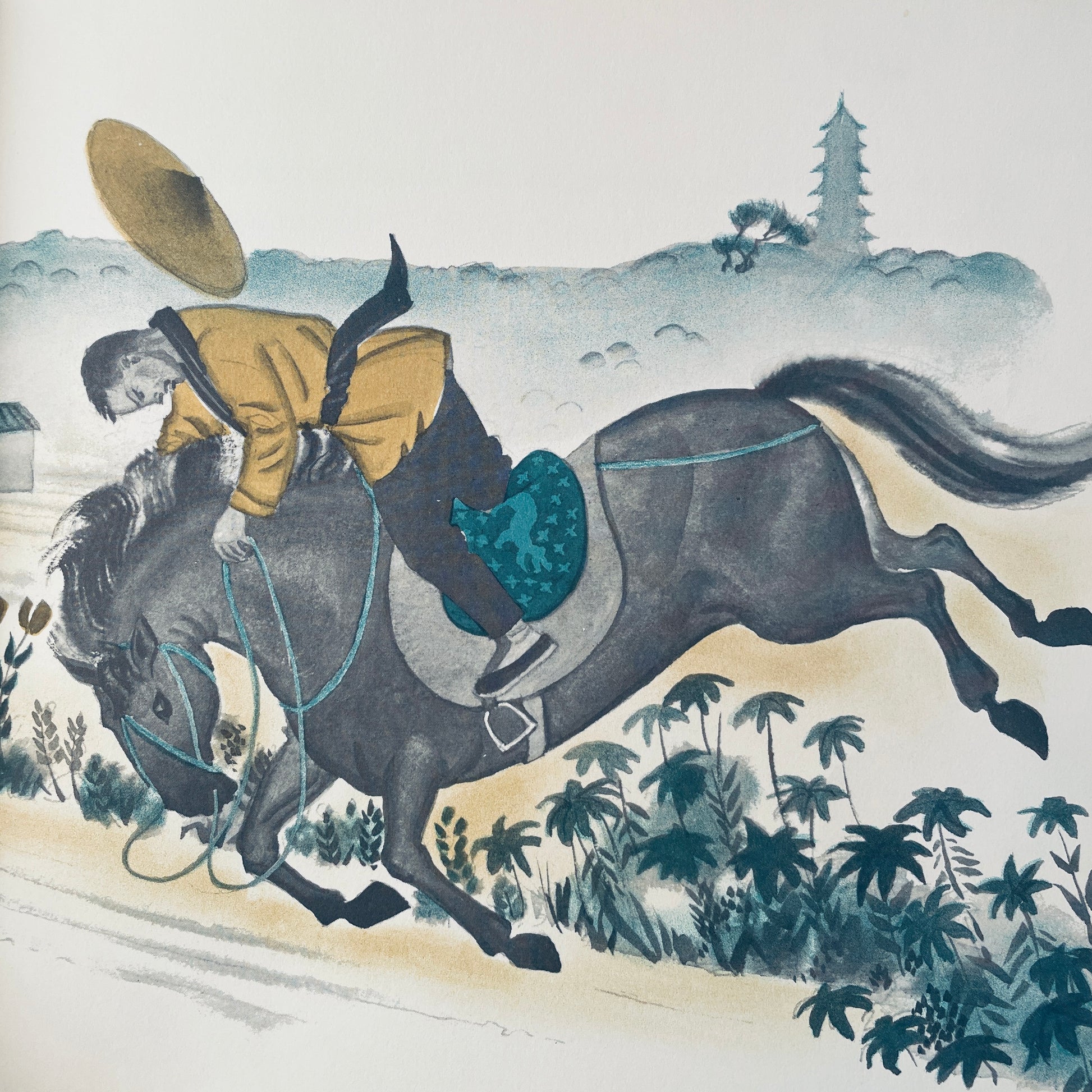 Kirkus Review 04/08/1963: This adaptation of an ancient Chinese tale is framed in a quiet which embodies the mood of old China. When his horse disappears, a farmer searches for him, but never becomes depressed. Confronted by anxious villagers who do not understand his calm acceptance, he declares ""you never can tell"". His philosophy proves to be valid, when the horse returns, bringing another horse with him. As event follows event, the placid farmer sits back, accepting, accepting, with his words ""you never can tell"". The idea that happiness and pleasure may result from sadness and tragedy, and vice versa, is clearly illuminated by the story. It isn't a deep philosophy, but it will appeal and perhaps be repeated by young listeners with a taste for old phrases. The illustrations, in washed technique, capture the quiet of the tale, in the static miniature style of the Chinese print.